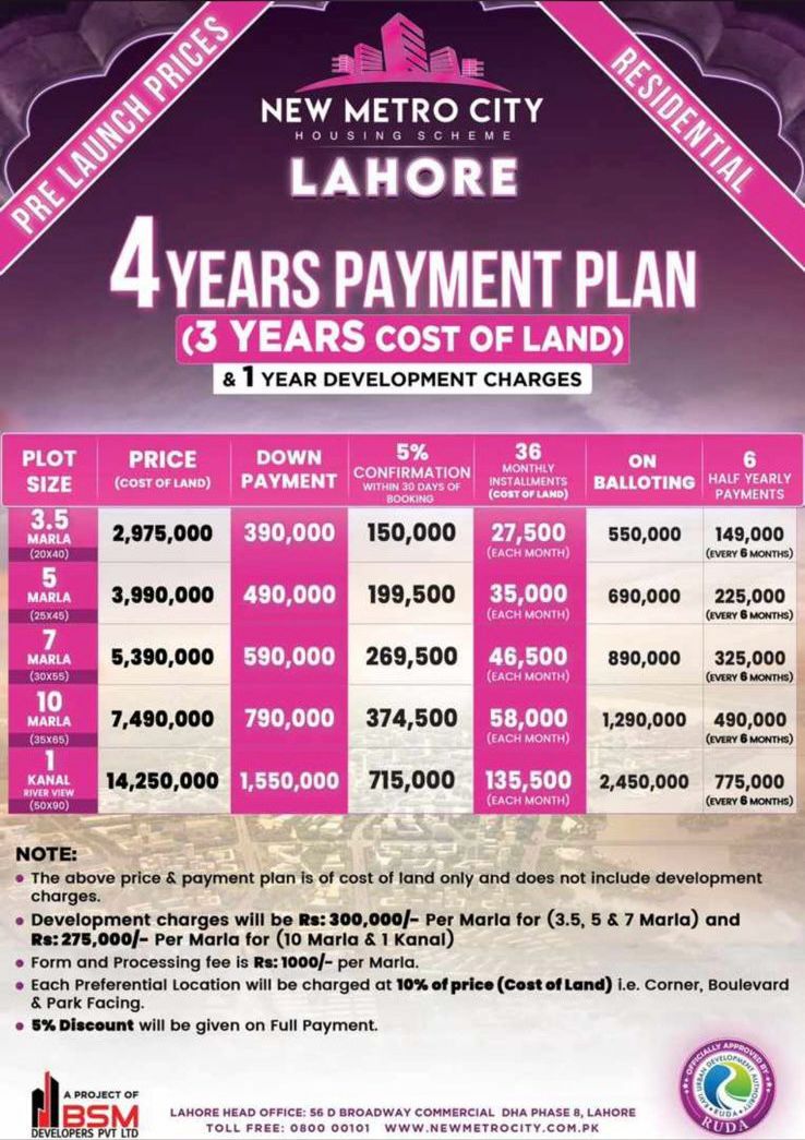 03231415325 book your metro city plot in lahore limited slots available!Book Now new metro city housing scheme lahore ruda approved 3.5 marla plot Residential plot size (20 x 40)cost of land 2975000this price is without development charges Details 5 marla plot Residential plot size(25 x 45)cost of land 3990000this price is without development charges Details 7 marla plot Commercial plot size(30 x 55)cost of land 5390000this price is without development charges Details 10 marla plot Commercial plot size(35 x 65)cost of land 7490000this price is without development charges Details Read More Commercial Details Commercial Details Residential Details Residential Details Commercial Details Residential Details Find Apartments Find Houses Find Offices 03231415325 Contact Us